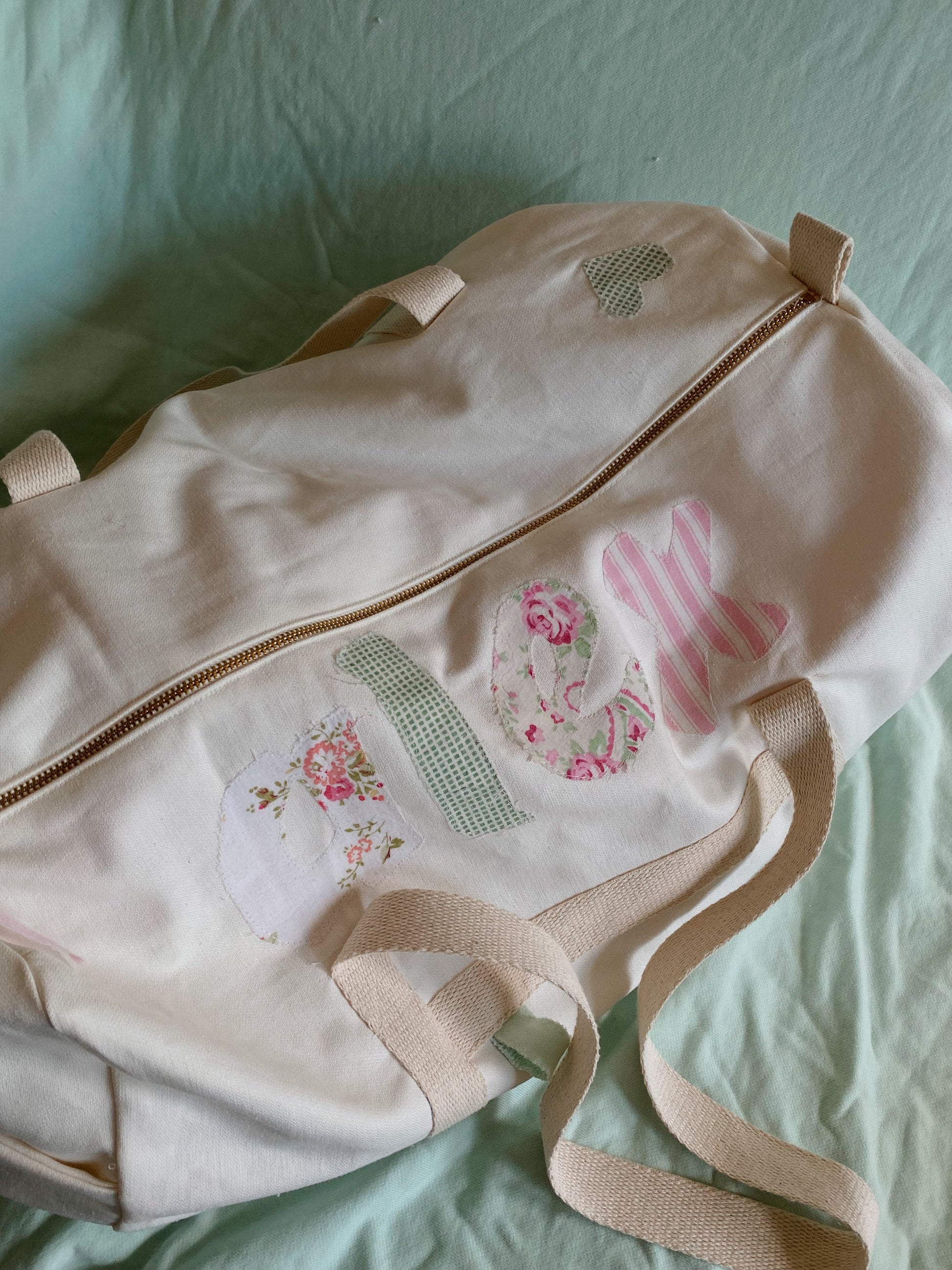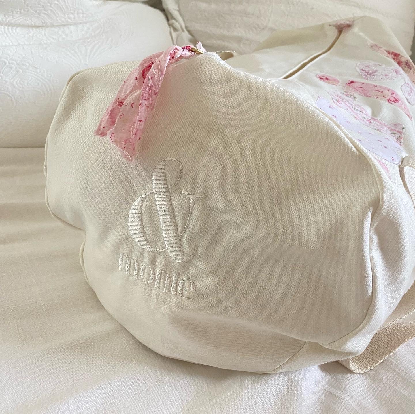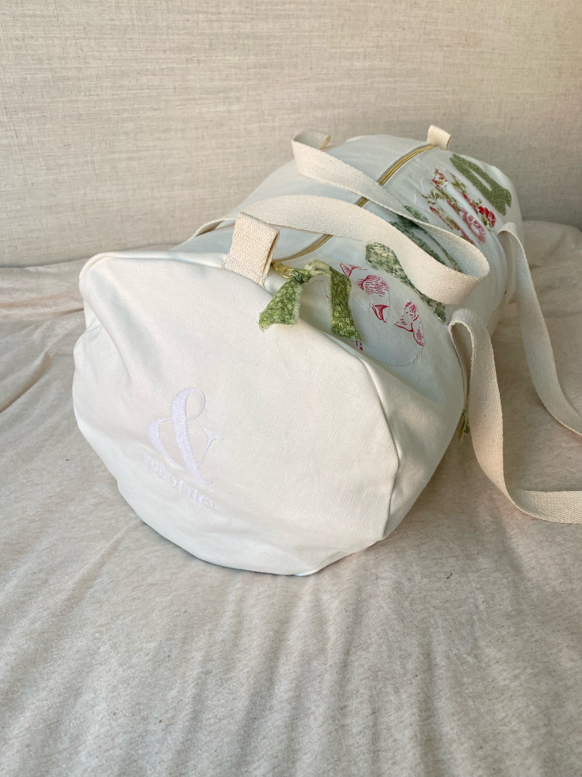 LEFT side of duffle features an embroidered logo and RIGHT side has a pocket.